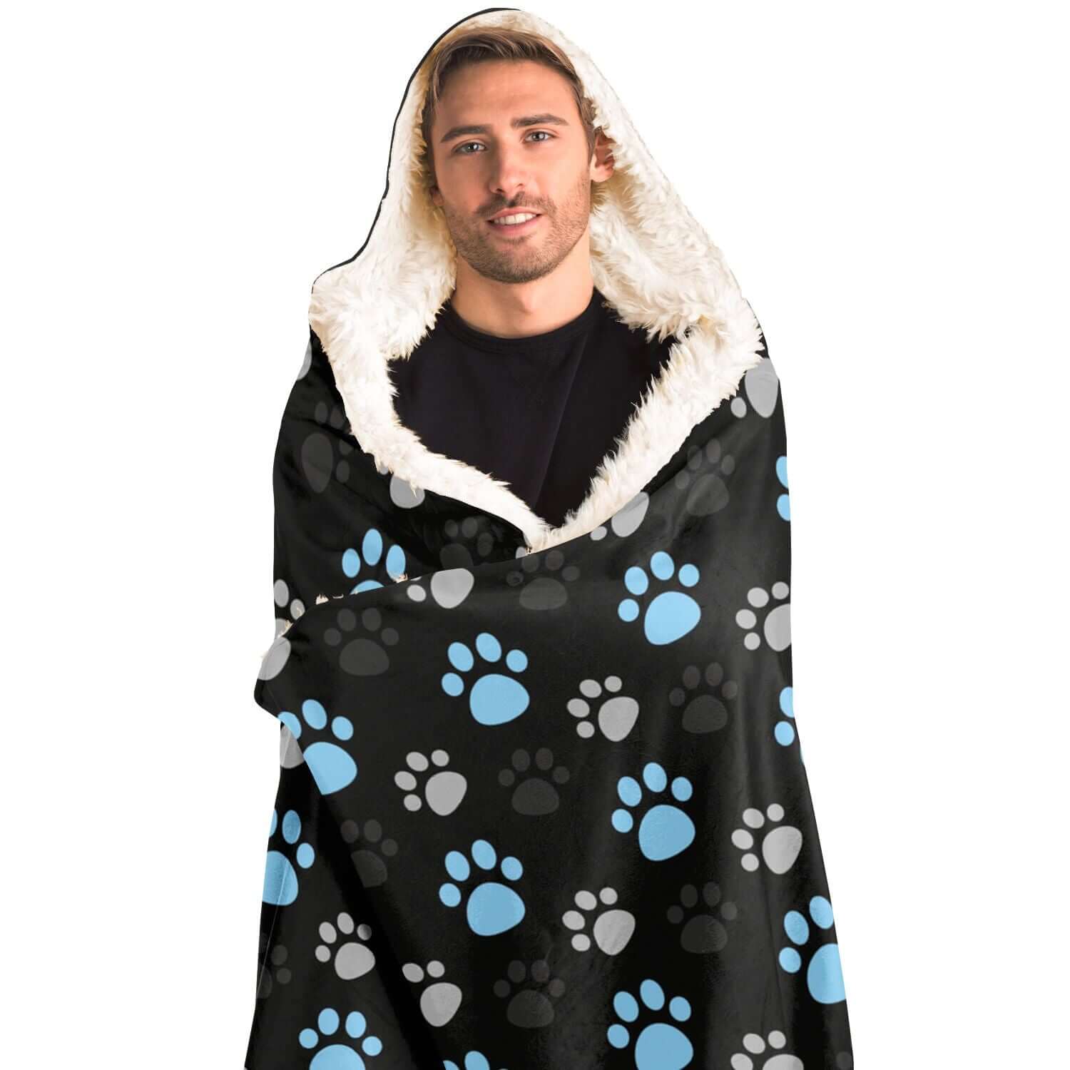Paw Prints Blue + Grey Hooded Blanket
